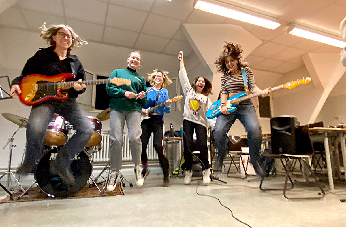 Noch mehr weibliche Power kommt mit der Band Olive auf die Bühne. Die Mädchenband unter Leitung von Maike Scheel probt seit September 2021. Mit Unterstützung von Stiftungsgeldern der Stiftung Berliner Leben aus dem Programm Stadtraum Plus und Mitteln der Leo Kestenberg Musikschule konnte ein Proberaum in der Sophie-Scholl-Schule eingerichtet werden.