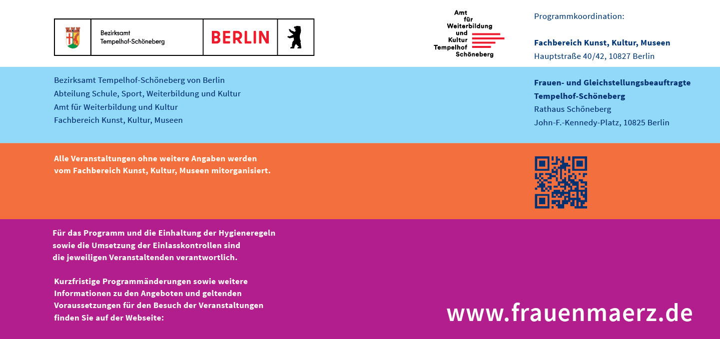 Ort: BEGiNE –Treffpunkt & Kultur für Frauen e.V.  Potsdamer Str. 139, 10783 Berlin